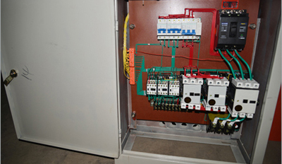 電氣控制系統(tǒng)需要控制JS750攪拌機的主傳動電機,供水系統(tǒng)電機,上料,下料等的電機。所有電器控制元件都設(shè)在配電箱中。配電箱內(nèi)的電器元件安裝在一塊鐵板上,安全可靠,操作維修方便。 |