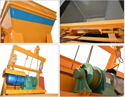 上料時,將需要攪拌的混合物裝在料斗內(nèi),啟動上料系統(tǒng),鋼絲繩牽引料斗向上爬升,當(dāng)爬升到一定高度時,料斗進入上料架,斗門即自動打開,物料經(jīng)漏斗卸入攪拌筒內(nèi)。 |